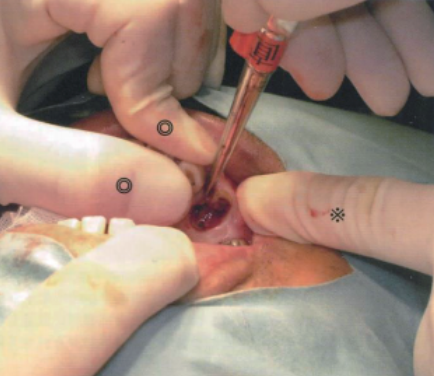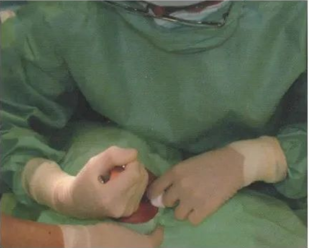 争取一锤击劈开,击锤时一般两下,第一下很轻,为预备挫打,第二下用力快,而脆,即轻-重!同时必须托下颌骨(在拔下牙或下颌阻生齿时)以免伤及颞颌关节。