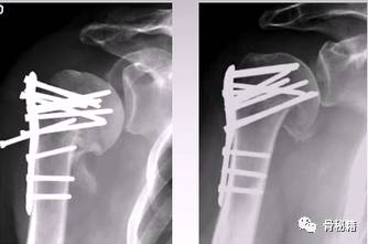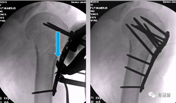 在此病例中,为了复位良好,舍弃了肱骨近端与钢板贴服