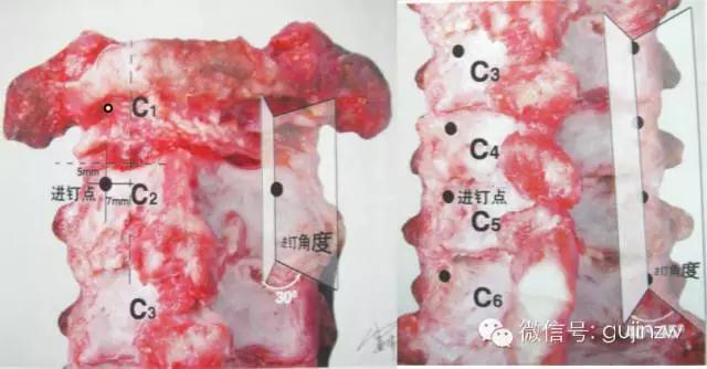 1、进钉点:颈胸腰各有不同;
