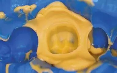原因:口内唾液血水没吹干净,初次印模被污染对策:清洗干燥初次印模