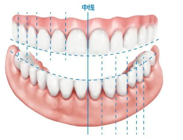 2.水平向,上下牙齿中线对齐;