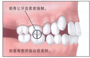 有些上牙与下牙舌侧接触。这发生在一侧颌骨过大或者过小,或者有些牙齿排列不正常。