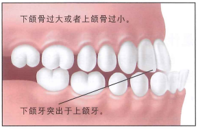 下颌骨太大或者过于前突。也可能上颌骨太小。这样下颌牙齿在上颌牙齿之前。反颌通常由于骨性错颌引起。