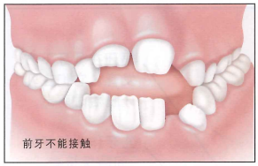 一些后牙正常接触,但是前牙不能接触。吮指和吐舌习惯会引起开颌。