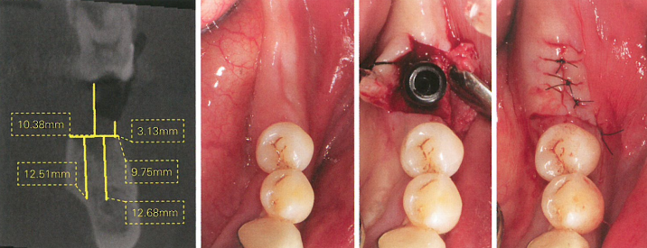 术前CBCT显示36骨宽度及管距足够约12mm,术中常规植入种植体,三维位置良好缝合。