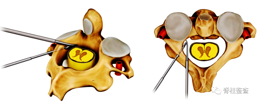 暴露C2和其他手术节段,钝性解剖显露关节突关节,并触诊确定关节突关节的内侧缘。