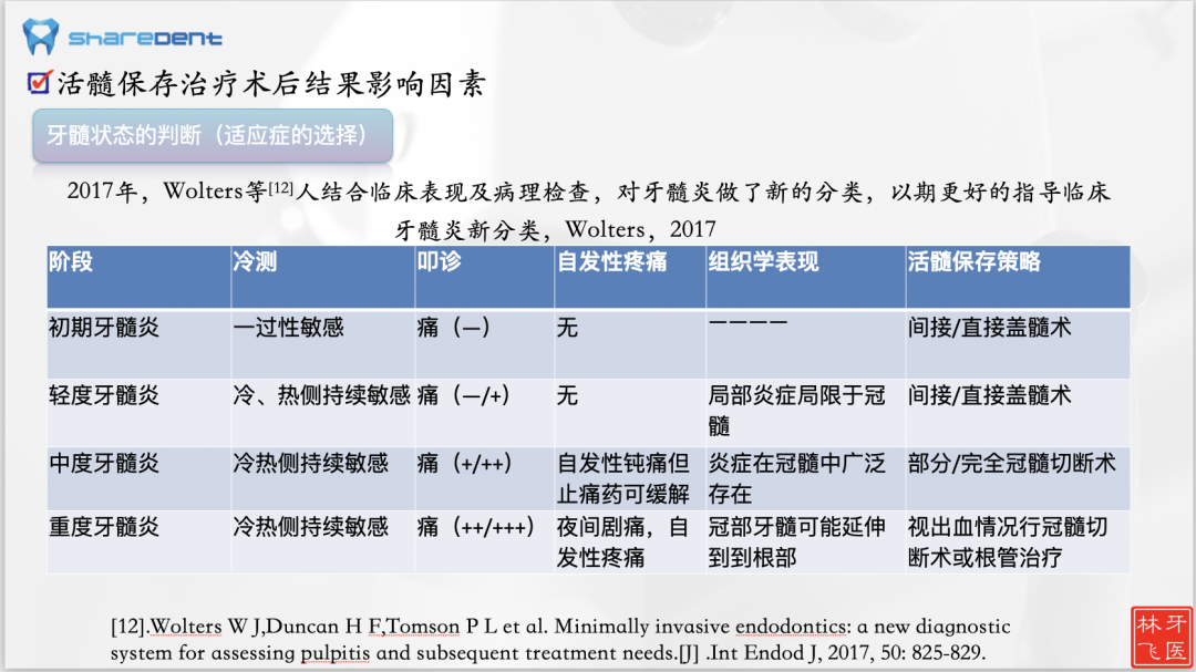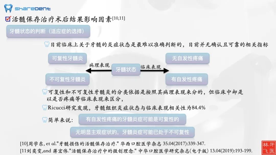 牙髓炎症的判断是目前临床最难判断的,同时也是影响活髓保存成功率的最重要因素。目前尚无十分明确且可靠指标来评估,更多靠的是医生个人临床经验。