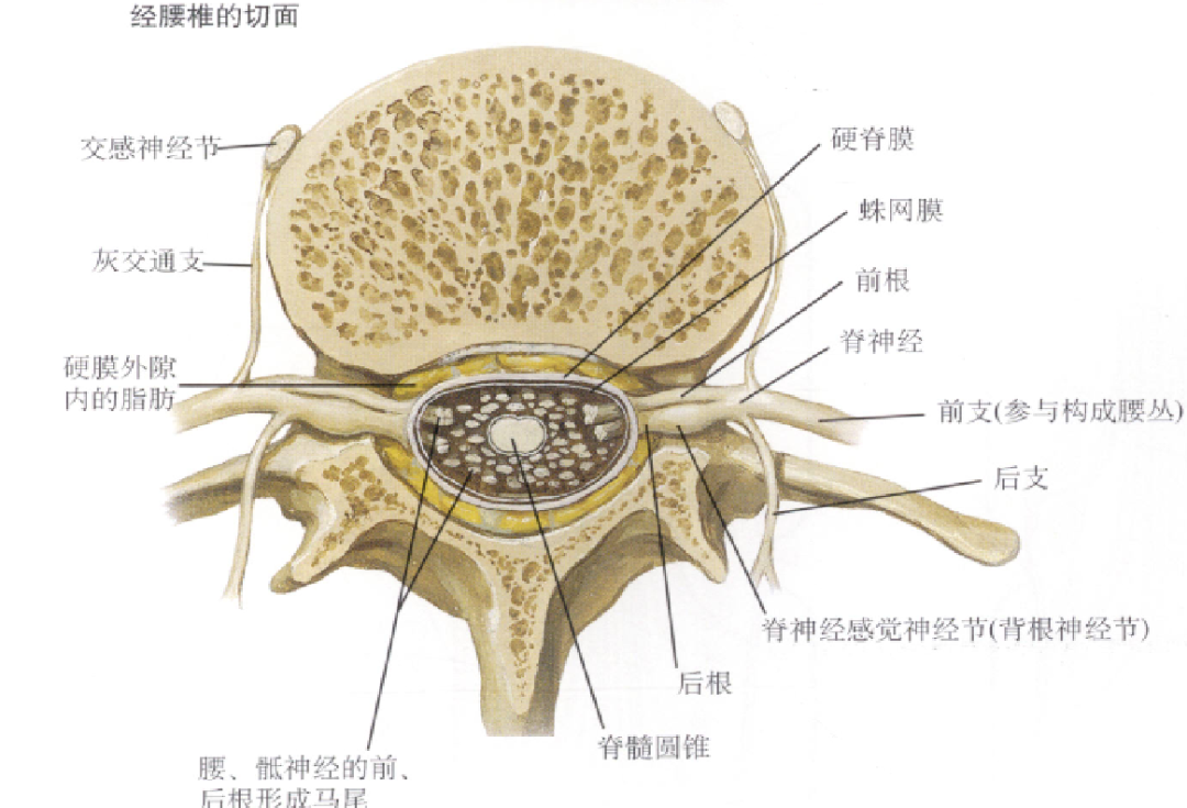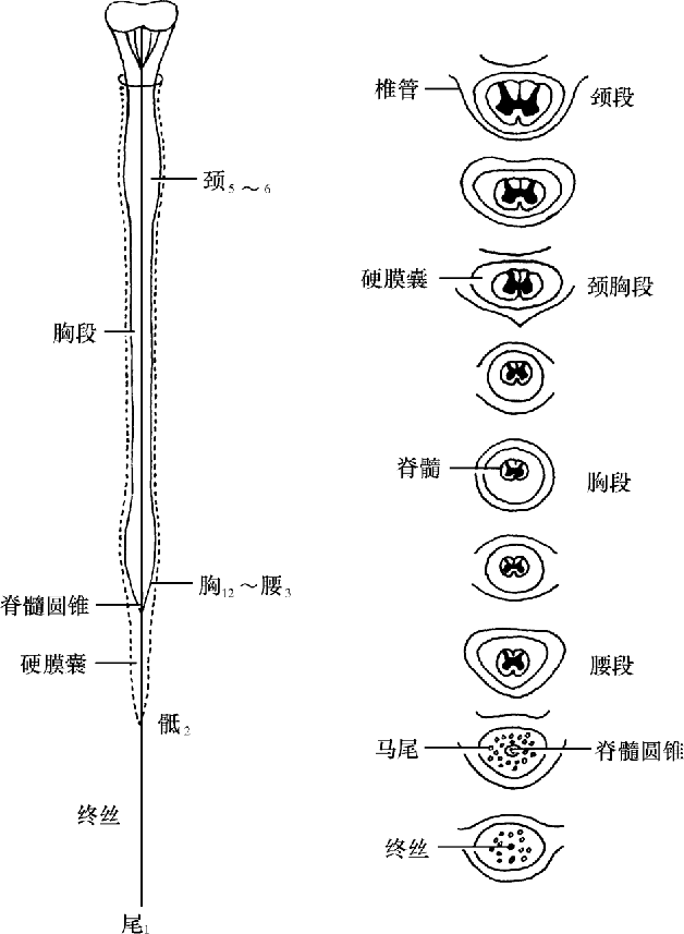 骶、尾髓(S1~5、Co)平对第12胸椎和第1腰椎。