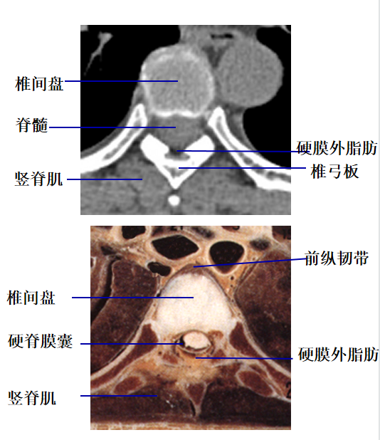 - 前、后纵韧带均较薄,CT上不能单独显示。