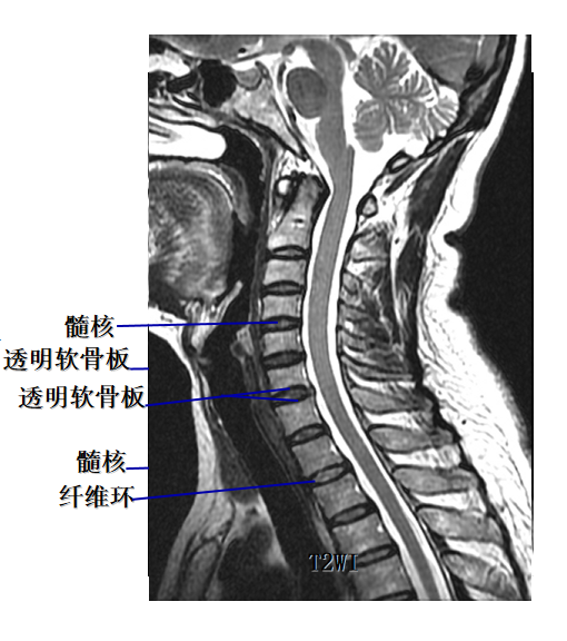 - 透明软骨板 T1WI和T2WI上均显示为低信号