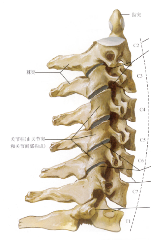 3-7颈椎椎体上面外侧缘的椎体钩与相邻椎体形成钩椎关节,增加颈椎稳定性,防止上一颈椎及椎间盘移位。
