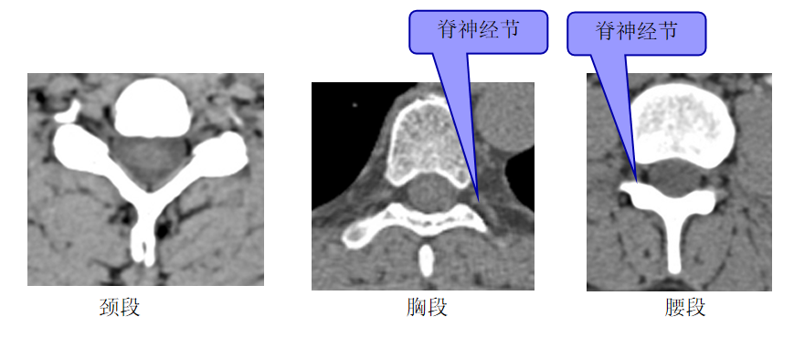 椎管形态 在横断面上椎管各段的形状及大小存在差异