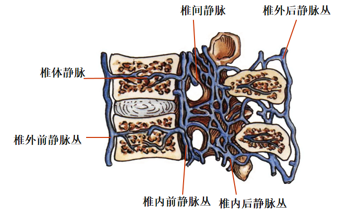1.椎外静脉丛:椎外前静脉丛和椎外后静脉丛
