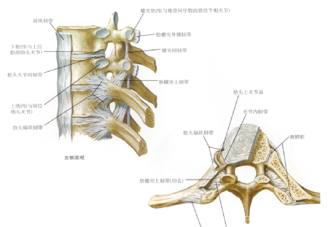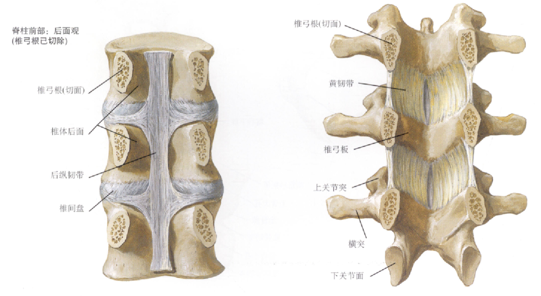 - 在各棘突之间、各横突之间,分别生有棘间韧带和横突间韧带。