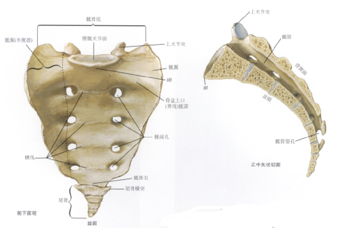 前面观:椎体自上而下渐加宽,第2骶椎最宽
