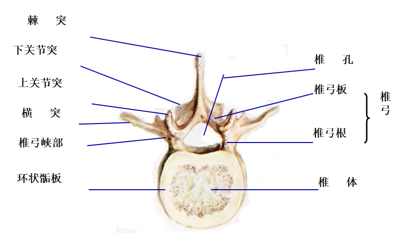 主要特征:椎管为完整性骨环,由椎体、椎弓根和椎弓板构成