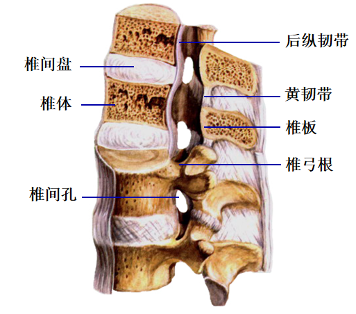 经过不同部位的椎间孔上部的结构不同,颈段主要为椎间静脉,胸、腰段主要为脊神经根。