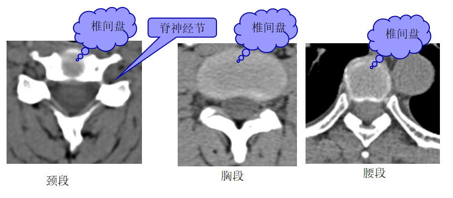 呈软组织密度影,CT值为70±5HU,不能区分髓核和纤维环