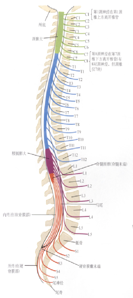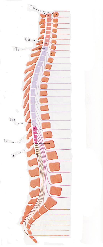 下段颈髓(C5~8)和上段胸髓(T1~4)较同序数椎骨高一个椎体