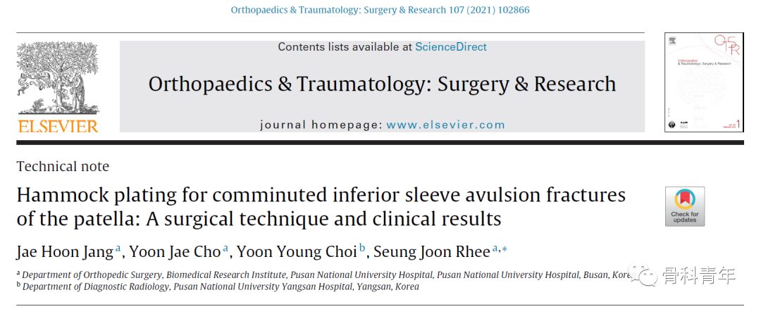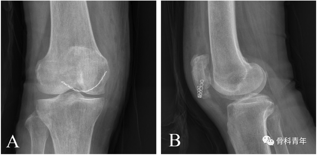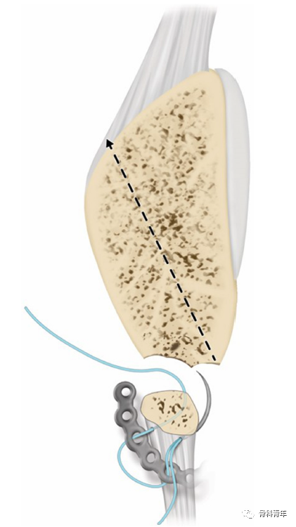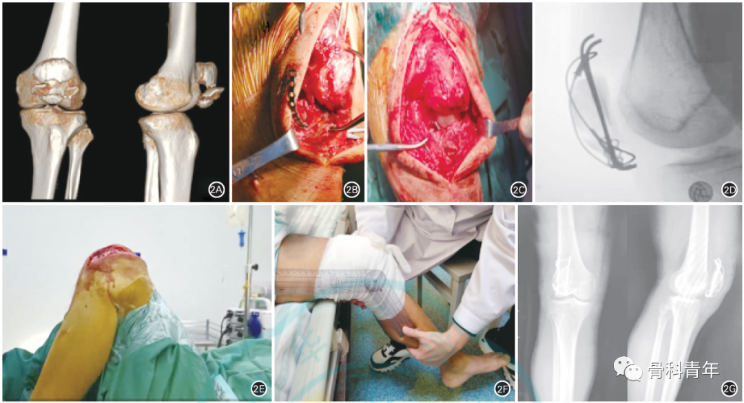 国内学者的方法与韩国学者存在差异,韩国学者将钢板放置于髌韧带表面,不需切开髌腱,国内学者则将钢板放置于髌腱与胫骨之间,并通过钢板孔置入克氏针,结合张力带进行固定。