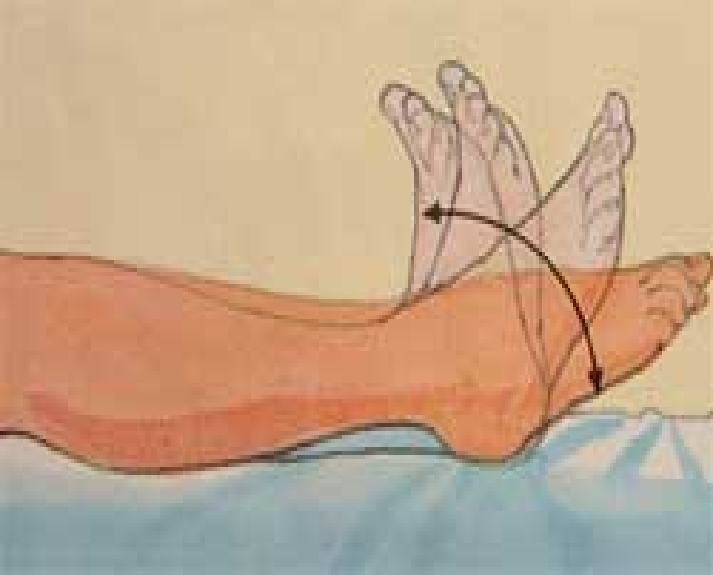 6)肌力训练:股四头肌和腘绳肌的等长收缩运动。直腿抬高练习