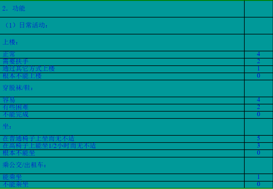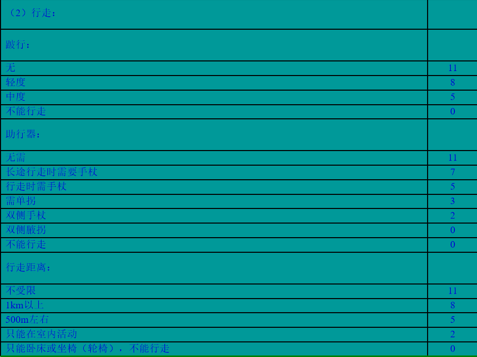 1.步态 主要确定步态类型、是否跛行、是否需要助行器。