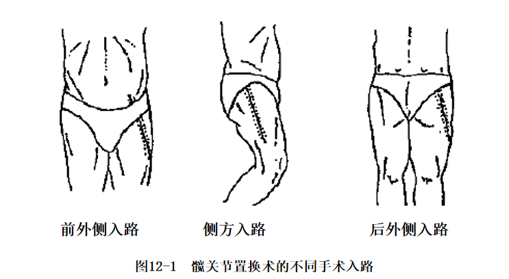 前外侧入路:可松解髋关节的挛缩,但手术野较深,易前脱位外侧入路:影响外展肌力,不可过度外旋后外侧入路:有后脱位的危险,但保持了臀中肌的完整性微创手术切口:术中未切断肌腱,不适合体型肥胖或畸形严重者