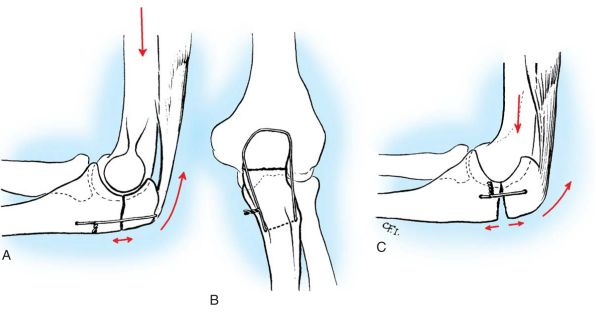 手术适应症: 伸肘装置遭到破坏的骨折(有移位的骨折)关节面受损手术类型:髓内固定、张力带技术、钉板系统、尺骨鹰嘴切除术等。