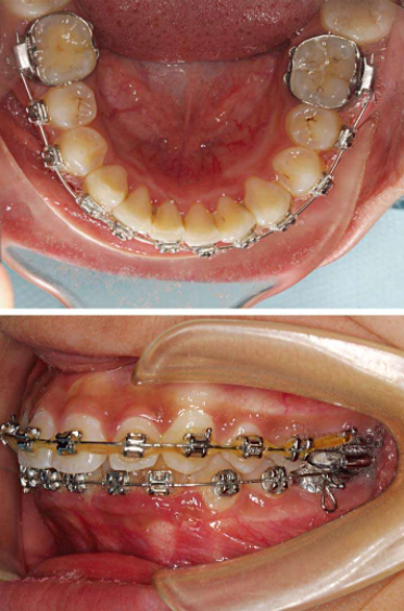 图6 不锈钢丝开大曲唇倾下前牙