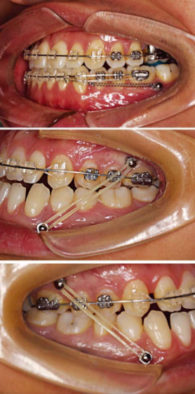 图11 种植支抗配合Ⅲ类反𬌗牵引