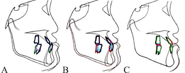研究表明93%的人群正中关系位与正中𬌗位不一致。也就是说头侧中所展示的下颌骨的位置不一定是正确的。正中关系位并不是一个点,而是一个范围,髁状突在关节窝内的位置,前后可以在5mm范围内。这些位置都可以使患者获得舒适的感觉。有一些Ⅱ类深覆𬌗或者上颌牙列不齐可能会造成下颌被迫处于后退位置,在矫正过程中随着上前牙排齐,咬𬌗打开,下颌就被释放出来,下前牙随之前移。这种情况在生长发育期之后依然存在。所以对于一些Ⅱ类,如果覆盖大于6mm,我们通常选择拔上4,下颌暂时不拔牙,等待上颌牙列排齐,上前牙内收达到正常覆盖之后再看下颌位置的变化,重新决定下颌是否需要拔牙。。