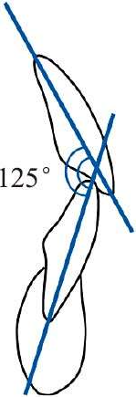 覆𬌗2mm,覆盖3mm,上下前牙长轴之间角度为125°。根据此关系调整上下前牙角度(图3)。