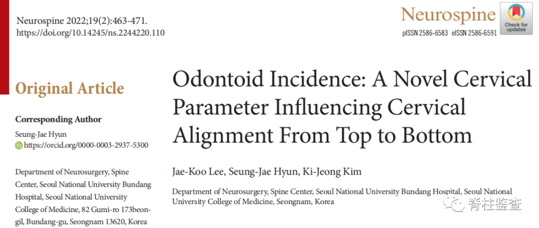 本文作者提出了一个新的颈椎参数,称为齿状突入射角( odontoid incidence,OI),旨在分析齿状突的形态结构和颈椎矢状位之间的关系,以帮助预测颈椎前凸( cervical lordosis,CL)。