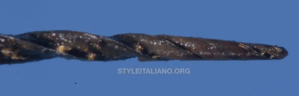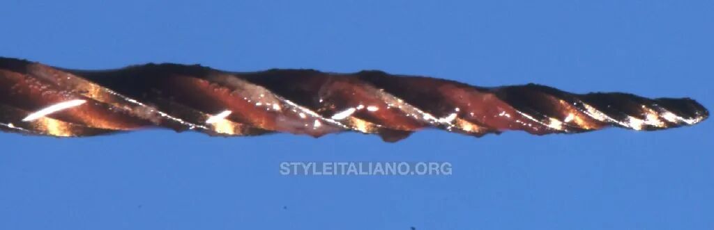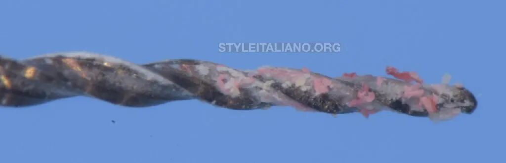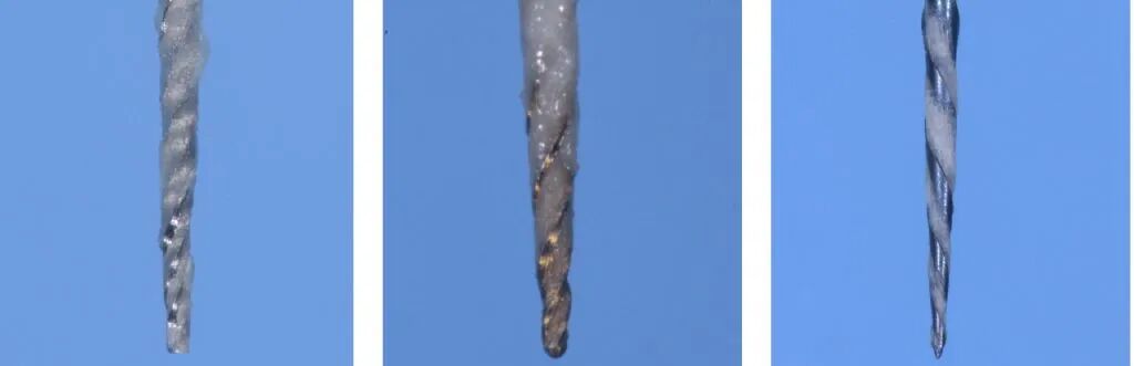 这是最佳的预备效果,凹槽充满“白色”碎片。这意味着器械接触了根管的大部分区域,切削下来的牙本质是完好的。这是最理想的状态。一般来说,我们可以停止进行机械预备,因为根管锉接触到的绝大多数是健康牙本质。
