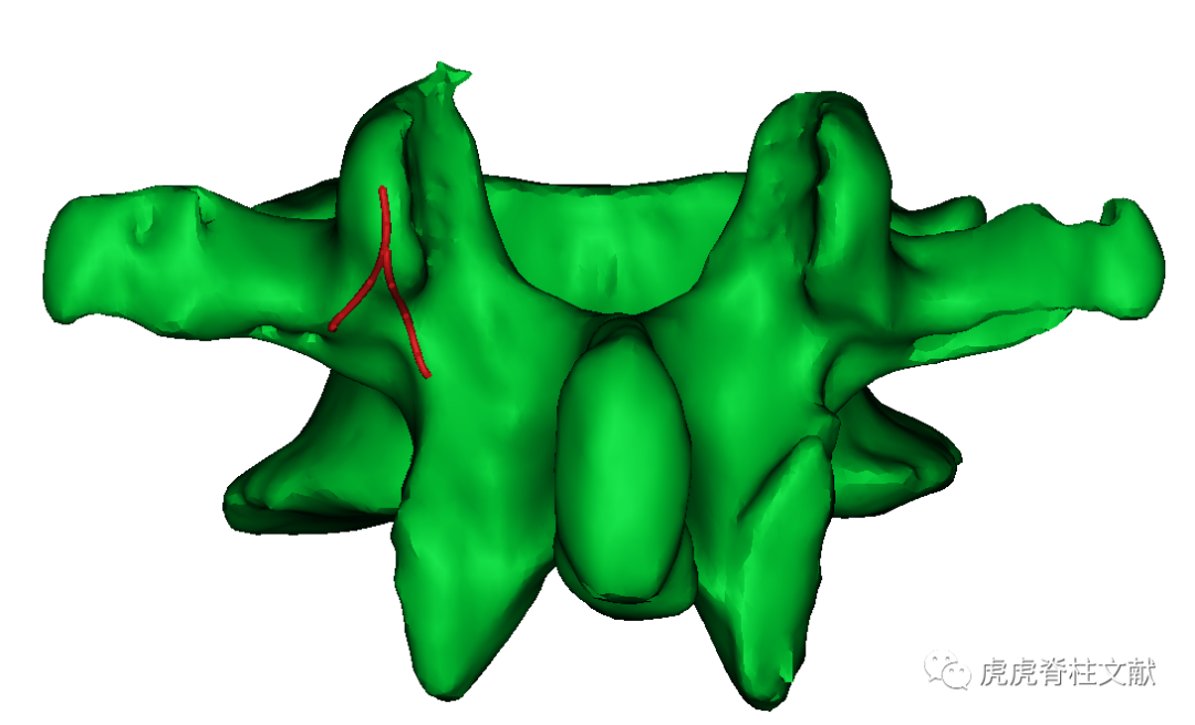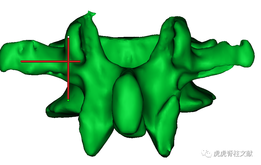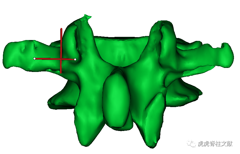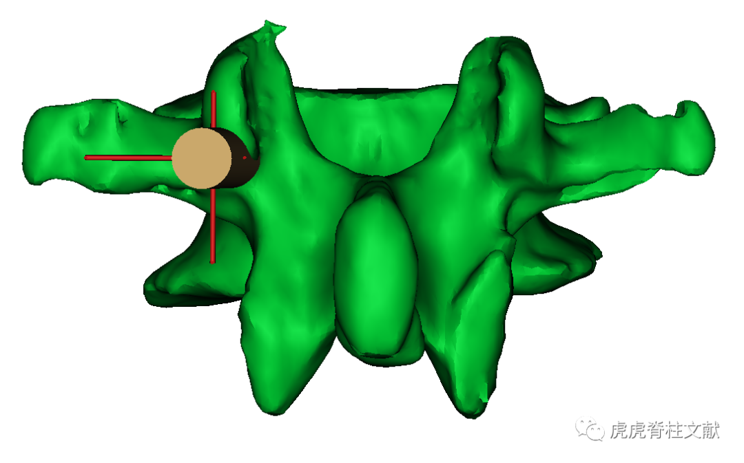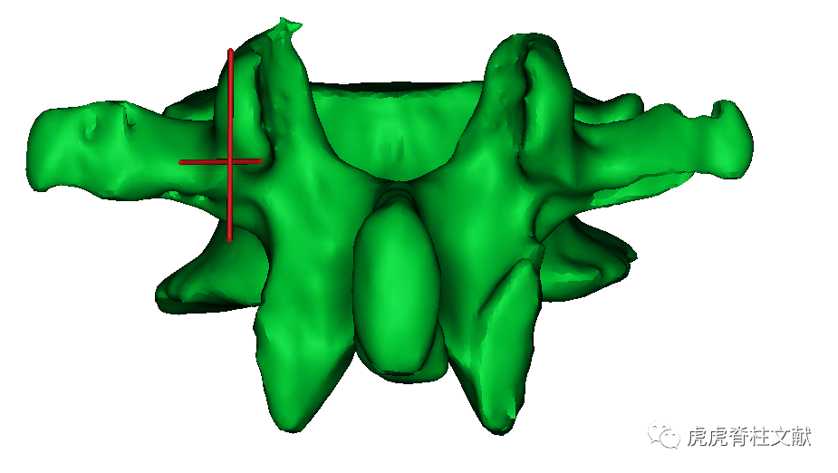 上关节突外缘的切线与横突中轴线的交点为进钉点,位于横突基底与上关节突之间交角处,与Weinstein法较为接近。