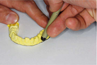 在石膏模型上标记出wala嵴(图13-1,图13-2)。
