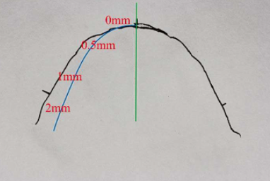 切导确定方法为上切牙切端与舌侧窝最凹点的连线(图10)。