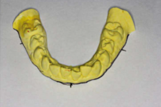 颌面图绘制:将模型颌面朝下放在扫描仪上,扫描得到牙弓颌面形态,标记每颗牙的颌面形态、点隙窝沟及中轴线(图14)。