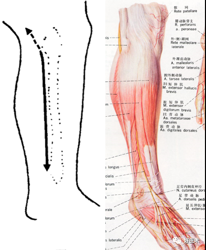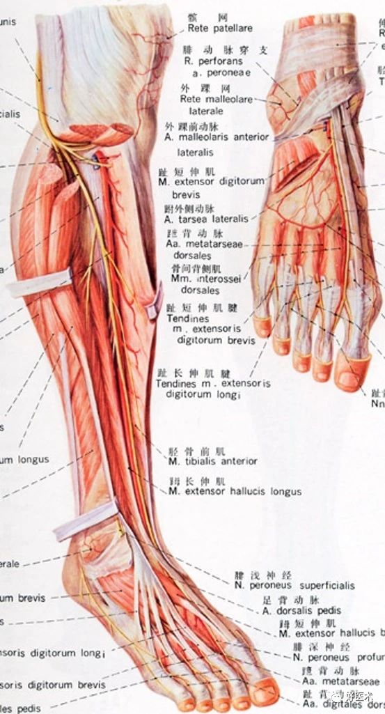 注意保护绕过腓骨颈的腓总神经及骨干上2/3段外侧面的腓深神经。