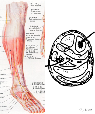 ②显露腓骨下1/3段时,可在腓骨短肌之前、第3腓骨肌之后做切口。