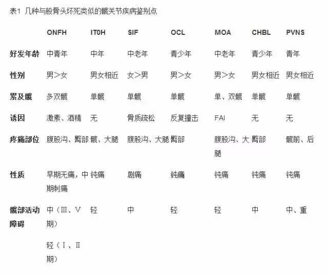 股骨头坏死为髋部常见疾病,自MRI应用以后早期诊断变得可能,但髋部有多种疾病类似ONFH,故在作出诊断之前应仔细鉴别,结合临床,采用多种序列的MRI及多方位的CT扫描,确切诊断是可能的。