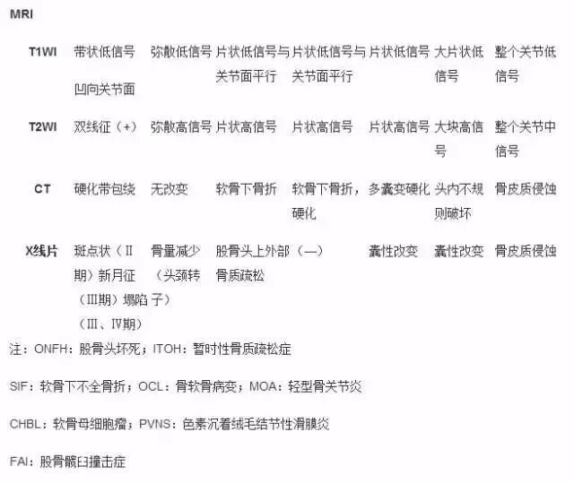 类似股骨头坏死MR图像改变的髋部疾病
