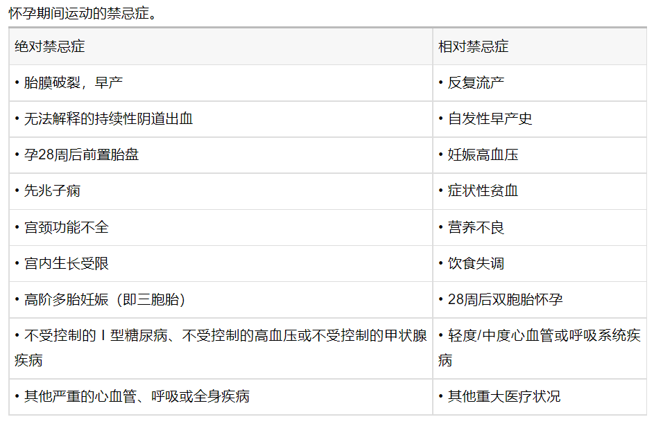 怀孕期间运动的禁忌症。