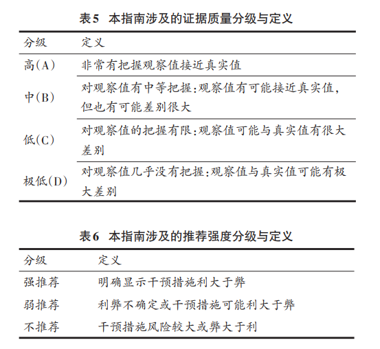 证据概况:总共纳入3篇指南[9,10,7],4篇综述[56-59],总体证据质量中,GRADE分级B级。
