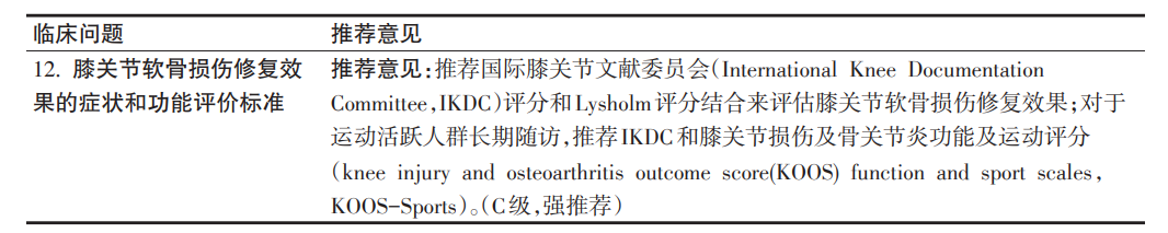 临床问题12:膝关节软骨损伤修复效果的症状和功能评价标准?