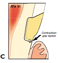 那么,是不是因树脂良好的粘接性能就能万无一失的用来修复楔状缺损呢?其实不然,即便是用上面的方法制备了洞型,结果会是怎么样呢?