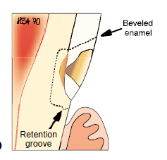 那怎样制备这楔状缺损的洞型呢?是不是把表面的一层牙本质磨除就可以呢?有一种理论是这样的:磨除表面一层,增加粘结面积。