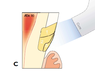 首先是洞型的制备。有的医师不主张制备洞型,其观点是觉得牙颈部本来的牙体组织就薄,制备洞型后会更薄,不安全。其实不制备洞型才是不安全的,首先是其固位不能得到保证,再者,暴漏在口腔环境中的牙本质是被污染的.