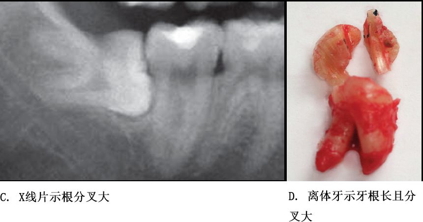 3、直接分牙拔除法:分牙拔除法(潜钻),可不切开、不翻瓣、不去骨拔除。