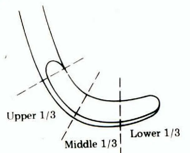 1、使刃部的凹面与地面平行,靠外侧的大弧线侧就是刃部的工作端。